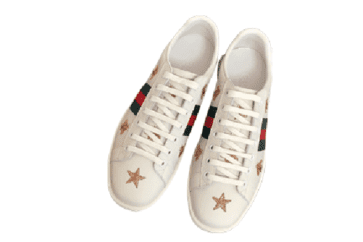 • Ace Sneakers: הסניקרס האייקוניות של גוצ'י, המוכרות בזכות הפסים הירוק-אדום והלוגו הכפול G. לעיתים מעוטרות בעיצובים ייחודיים כמו דבורים, נחשים וכוכבים.