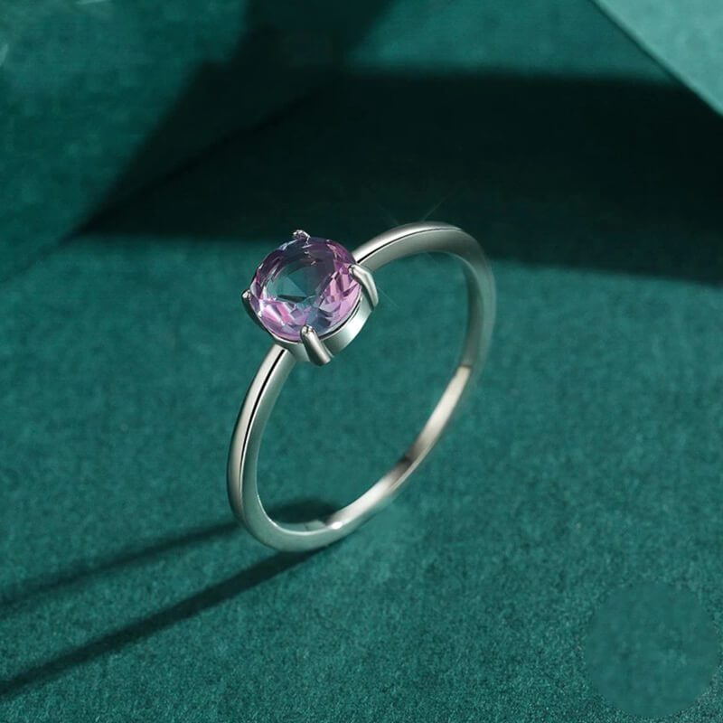 טבעת יוקרה-Silver Classic Romantic Round Sparkling Watermelon Tourmaline Finger Ring For Women
