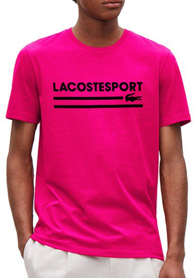 לקוסט-LACSOTE TSHIRT DESGIN MEN SHORT – Pink & Black Logo