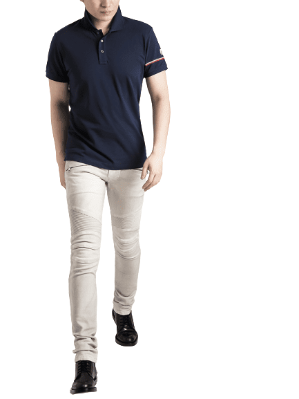 MONCLER POLO SHORT MEN LOGO SIDE BLACK AND BLUE