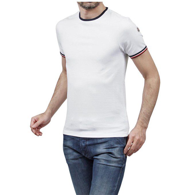 מונקלר-MONCLER SHORT T-SHIRT MEN SIDE LOGO WHITE